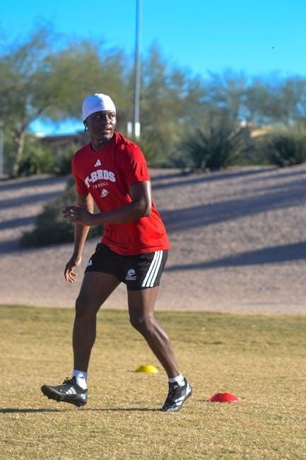 The cool-down mirrored the warm-up in reverse. It started with light jogging to reduce heart rate‚ followed by static stretching‚ holding each stretch for 20-30 seconds. Emphasis was placed on major muscle groups used during the session.